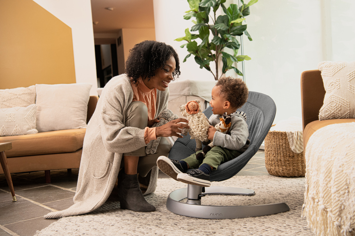 Een klein duwtje en de LEAF™ grow schommelt van links naar rechts. Een beweging die zo kalmerend is dat de baby zomaar in slaap kan vallen. En als dat gebeurt? Geen probleem.