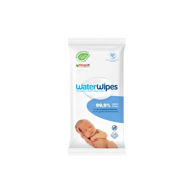 - Omdat er geen chemicaliën gebruikt worden om de vloeistof aan de doekjes te “binden”, kan het WaterWipes water soms naar de bodem van het pak zakken , waardoor de bovenste doekjes een beetje droog aanvoelen. Houd het pakje gewoon even ondersteboven en knijp er een paar keer in om het water gelijkmatig te verdelen.